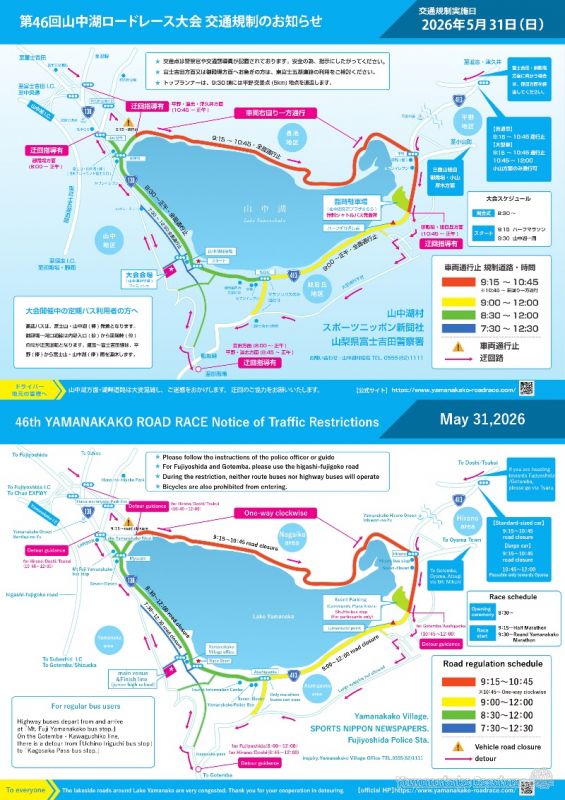 ハーフマラソン、山中湖一周の種目で開催予定。